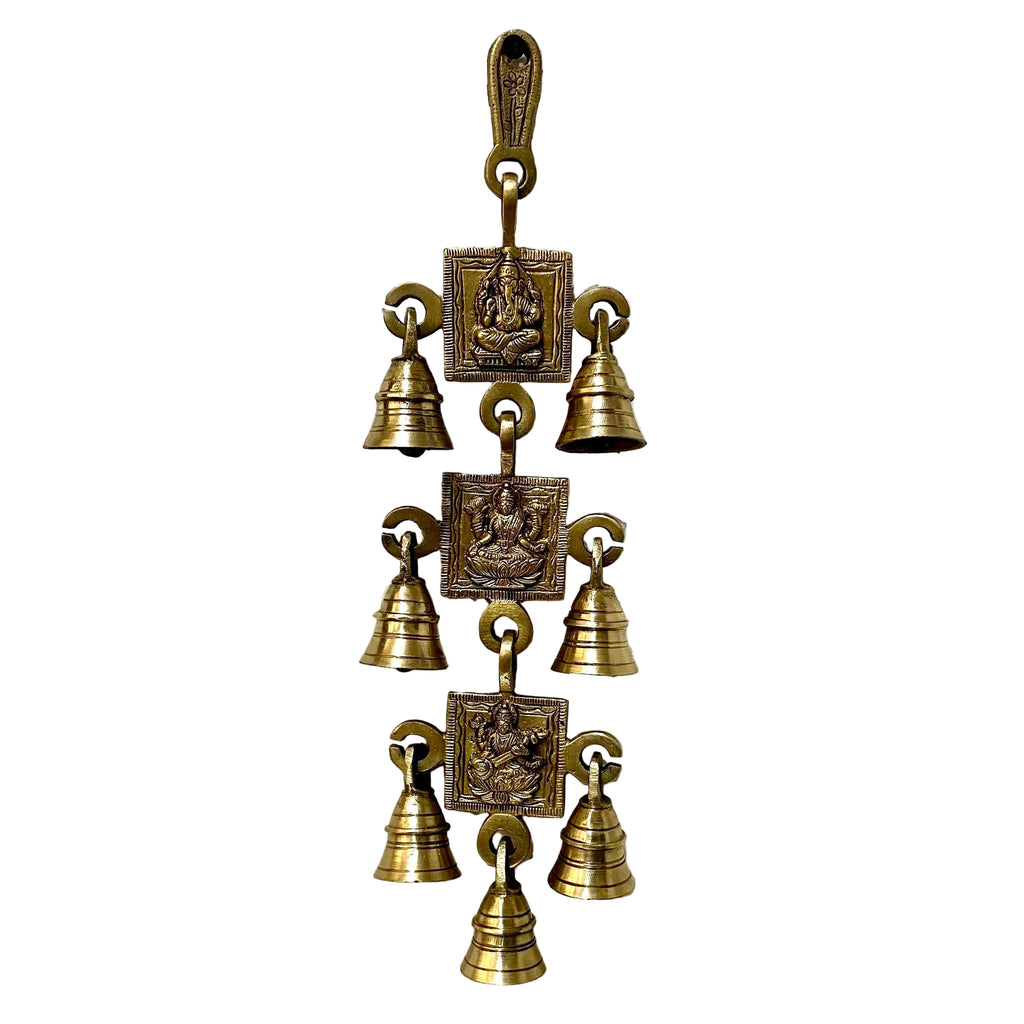 Ganesh Lakshmi Saraswati Hanging 7 Bells Brass Wall Décor Art Only At Tamrapatra