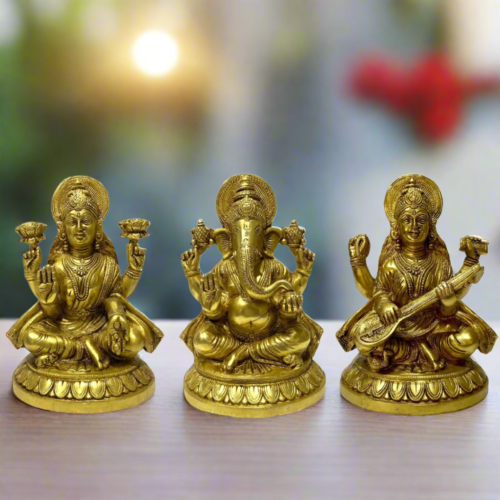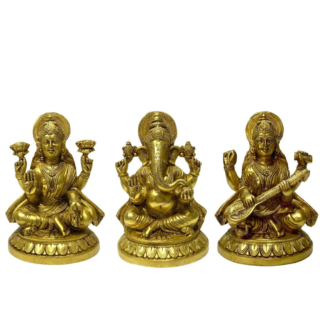 Gift Brass Idols Sarasvati Lakshmi Ganesh Hindu Gods Religious From Tamrapatra