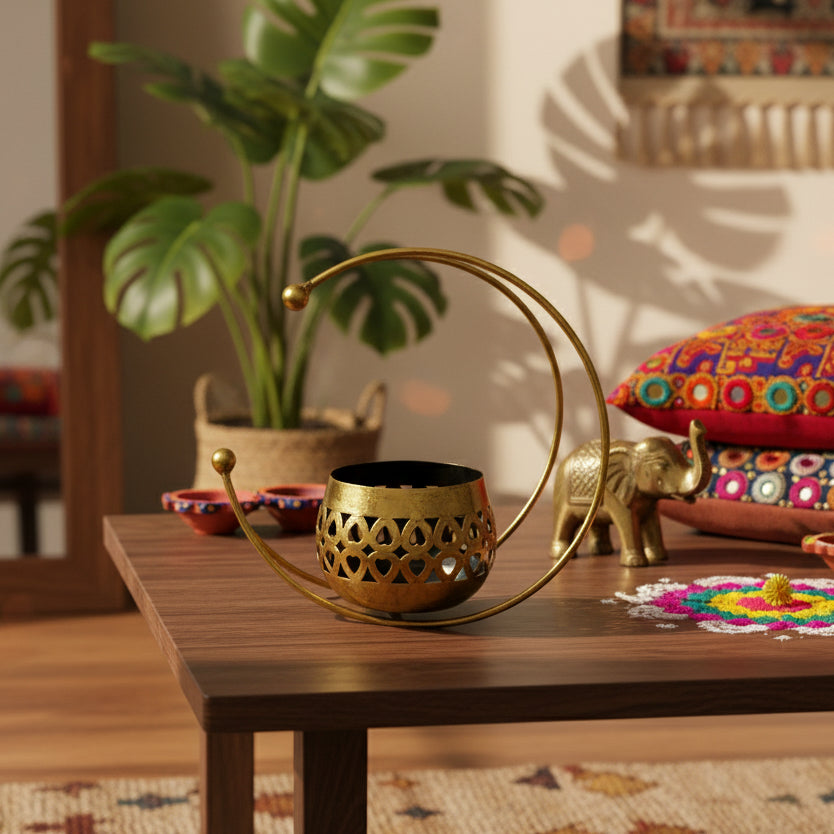 Metal Moon Pot Carved Votive Gold Candle Holder Creations From Tamrapatra