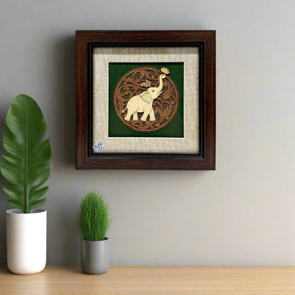 Auspicious Wooden Art Frame Elephant With Lotus For New 3D Design By Tamrapatra