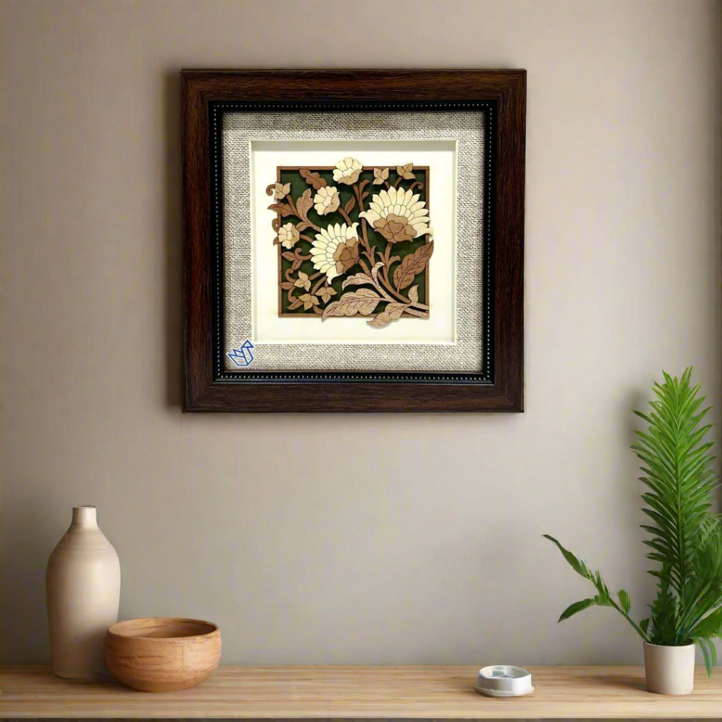 Floral Green 3D Wood Artwork Exclusive Designs Hanging Wall Frame By Tamrapatra