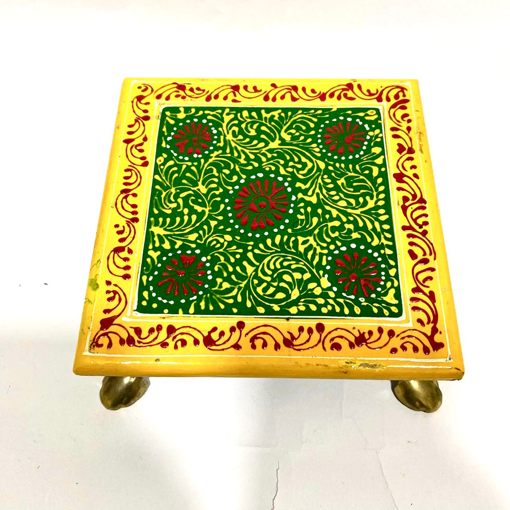 Hand Painted Wooden Bajoth Color With Metal Legs Handcrafted By Tamrapatra