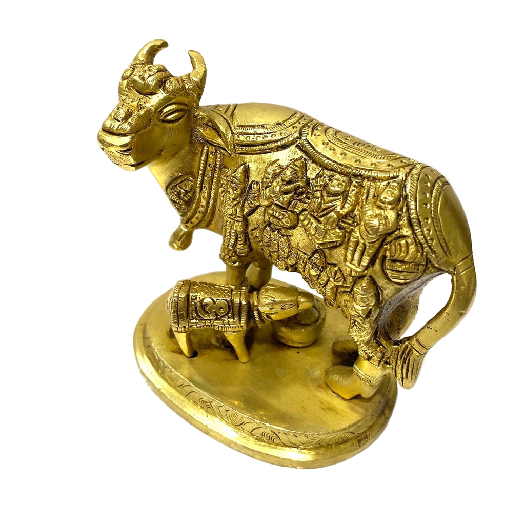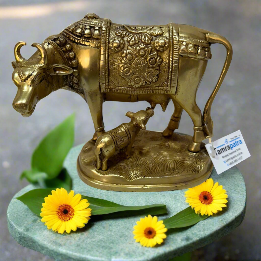 Kamdhenu Cow And Baby Brass Decorative Showpiece Exclusively At Tamrapatra