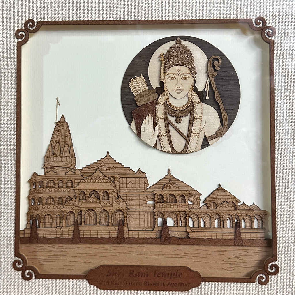 Shri Ram Temple Ayodhya With Lord Ram In 3D Wooden Art Frame By Tamrapatra